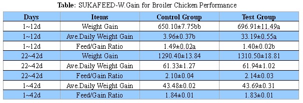SUKAFEED-W.Gain contains a lot of probiotics such as bacillus, lactic acid bacteria, bifidobacterium, etc, and metabolites of these bacterium such as amino acid, organic acids and somatomedin, etc. It can maintain intestine ecological balance, inhibiting the growth harmful bacteria, effectively decomposing starch, protein and other macromolecular substances in feed, releasing small molecule nutrients easy to digest and absorb, improve feed utilization and the production performance of poultry.