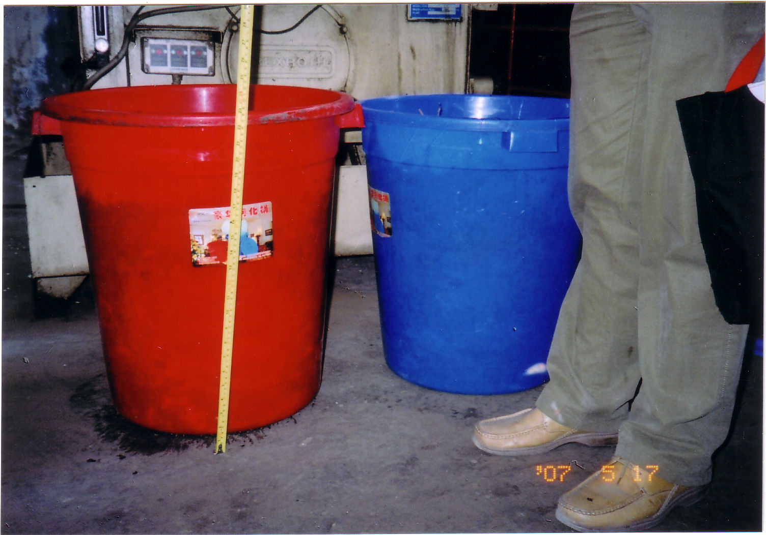 小试取现场垃圾两桶,分别装原生垃圾50KG,一桶加入菌剂,一桶不加任何助剂做空白,检测第一天和第八天两桶的臭气浓度,目测减量效果。