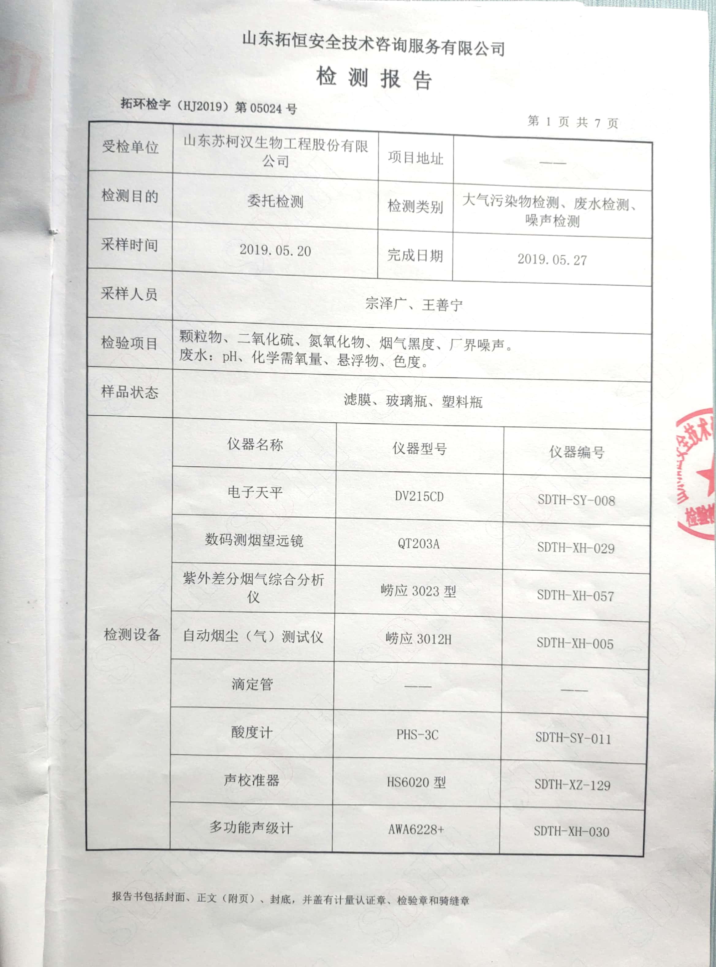 苏柯汉公司环评检测报告公示-大气、废水、噪声检测