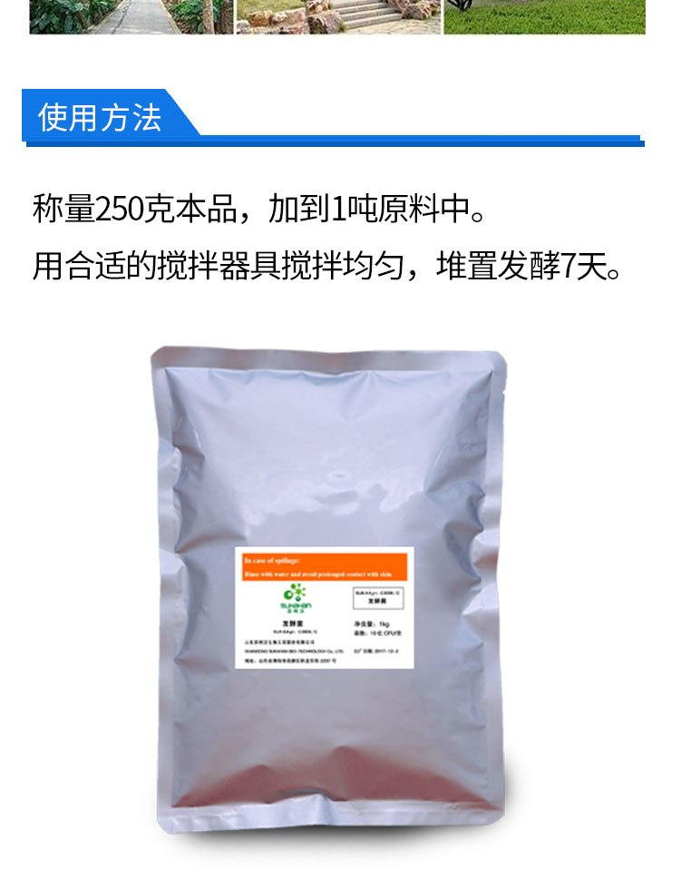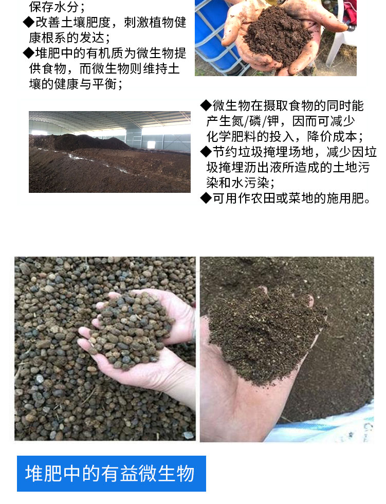 该产品中的微生物在堆肥过程中能够产生消化酶来分解堆肥中的有机质和纤维素类碳水化合物。